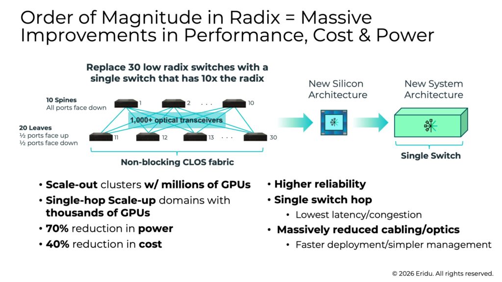 “Today’s cloud networking gear is clearly insufficient for the bandwidth demands of accelerated compute,” said Dylan Patel, founder and CEO of SemiAnalysis. “As larger MoE models and trends like disaggregation of prefill and decode emerge, demands for network bandwidth and scale are only accelerating. Eridu’s networking technology is purpose-built for massive AI scale, supporting both scale-out and scale-up, enabling more bandwidth, larger AI clusters and lower costs. Eridu is the first company I’ve seen with the team and vision to deliver the next level of interconnect scale required to meet the insatiable demands of accelerated compute.”